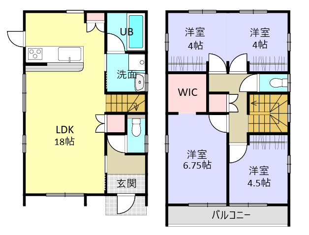 クロゼット 両面バルコニー 築2年以内 対面式キッチン LDK18帖以上
