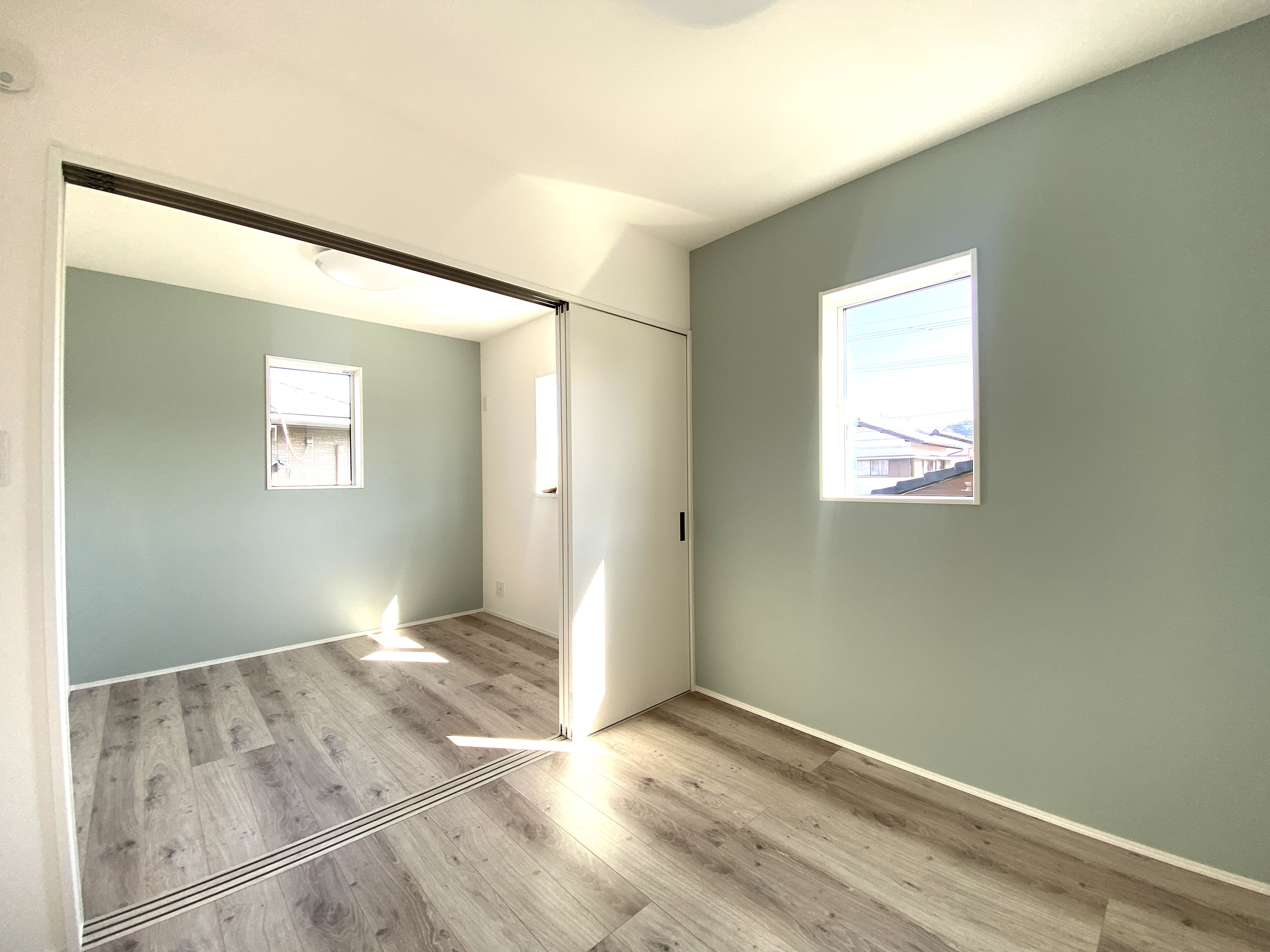 淡いグリーンが可愛らしい洋室です。