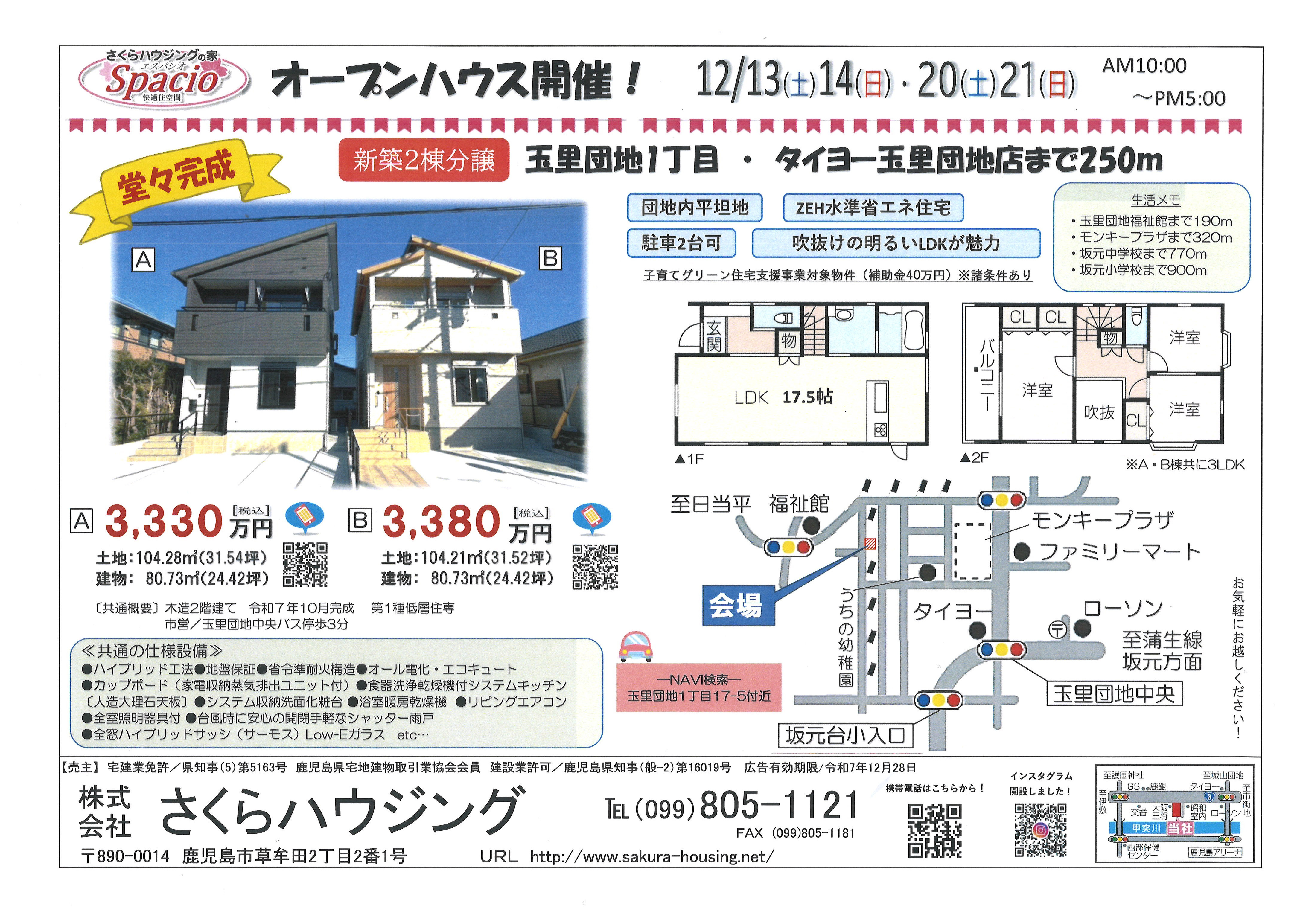 12/20(土)21(日) 玉里団地1丁目オープンハウス開催
